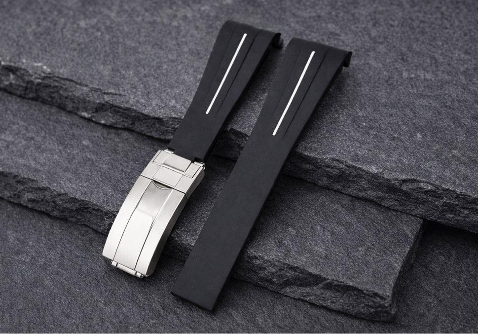 Each strap is fashioned from the finest natural rubber, selected for its extraordinary resilience, suppleness, and ability to refine with wear — a material worthy of the timepiece it accompanies. Every detail, from the texture of the surface to the precision of each edge, reflects a standard of craftsmanship that demands nothing less than excellence.