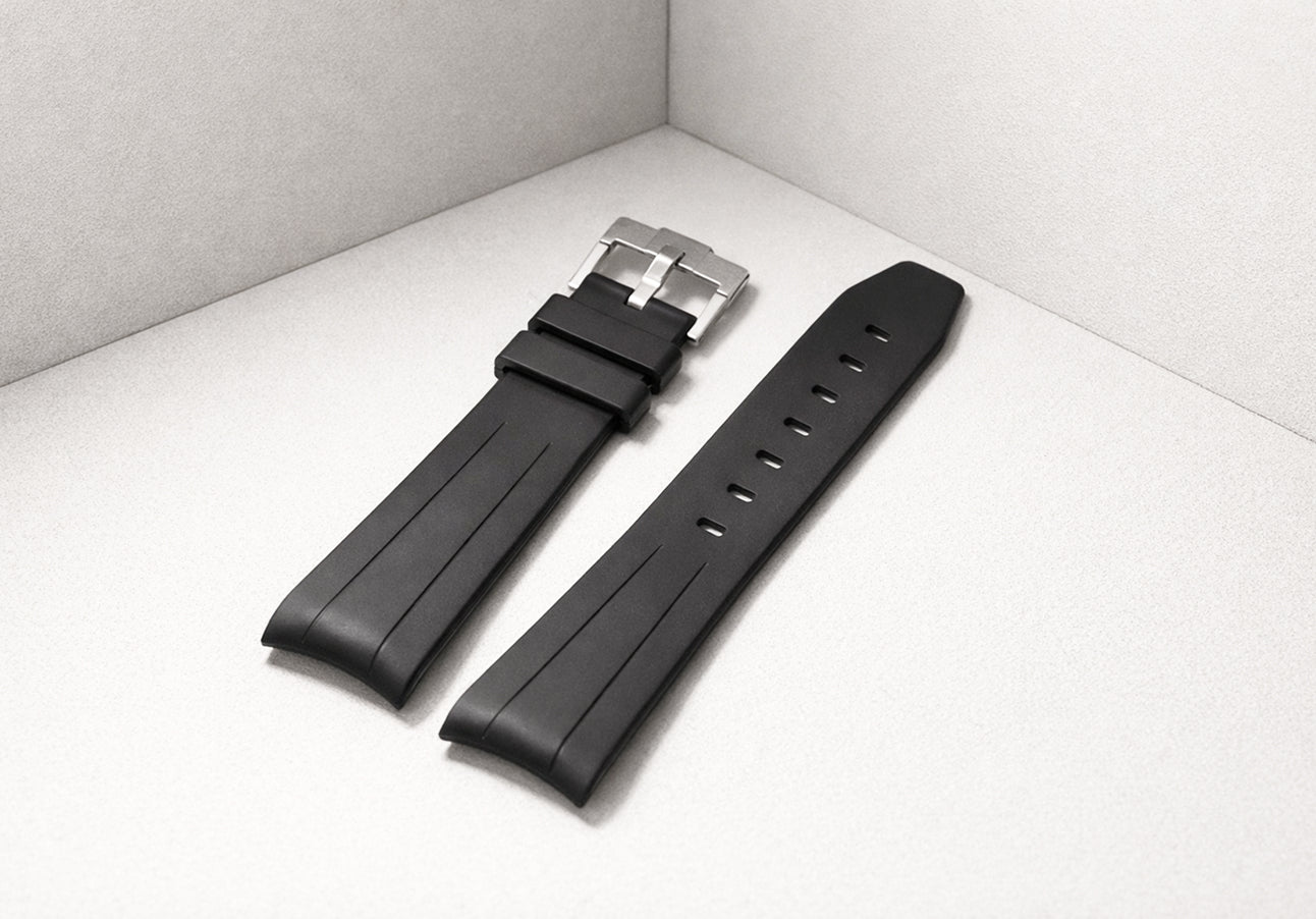 Each strap is fashioned from the finest natural rubber, selected for its exceptional resilience, suppleness, and enduring comfort against the wrist. Every detail reflects an unwavering commitment to quality — a standard worthy of the timepiece it accompanies.